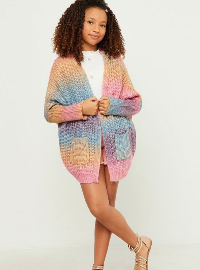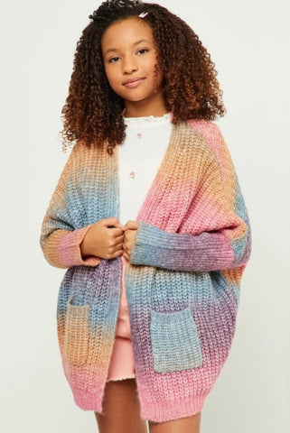 Girls ombré striped chunky knit oversized sweater