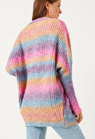 Woman’s ombré striped chunky knit oversized sweater